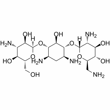 Framycetin sulfate (Neomycin B sulfate), an aminoglycoside antibiotic, is a potentRNase P cleavage activityinhibitor with a Ki of 35μM. Framycetin sulfate competes for specific divalent metal ion binding sites in RNase P RNA...