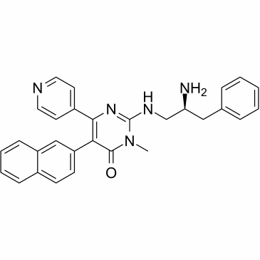 Ralimetinib (LY2228820) is a novel and potent inhibitor of p38 MAPK with IC50 of 7 nM in a cell-free assay, does not alter p38 MAPK activation. Phase 1/2.