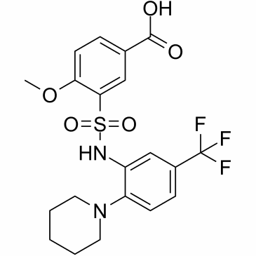 AMG-548, an orally active and selectivep38αinhibitor (Ki=0.5nM), shows slightly selective overp38β(Ki=36nM) and >1000 fold selective against p38γ and p38δ. AMG 548 is also extremely potent in the inhibition of whole bloo...