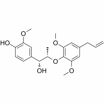 Myrislignan, a lignan isolated from Myristica fragrans Houtt, possesses anti-inflammatory activities. Myrislignan inhibits interleukin-6 (IL-6) and tumour necrosis factor-α (TNF-α). Myrislignan significantly inhibits the express...