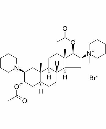 Pipecuronium bromide is a potent long-acting nondepolarizing steroidal neuromuscular blocking agent (NMBA), and a bisquaternary ammonium compound. Pipecuronium bromide is a powerful competitivenAChRantagonist with aKdof 3.06μM...