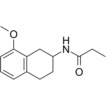 8-M-PDOT (AH-002) is a selectivemelatonin MT2 receptoragonist. 8-M-PDOT is 5.2-fold selective forMT2over MT1 receptors. 8-M-PDOT binds human recombinantMT2 and MT2 receptors with pKi values of 8.23 and 8.95 re...